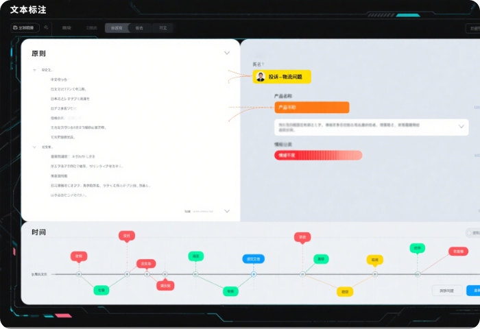 为助力客户优化多语言自然语言处理大模型,我司承接了 跨模态文本语义增强标注项目针对客服对话、电商评论、新闻资讯等多场景文本,团队完成 实体识别(人名 / 地名 / 产品名等 30 + 类别)、情感倾向标注(正向 / 负向 / 中性 + 强度分级) 及 意图分类(咨询 / 投诉 / 下单等 20 + 业务意图),并对长文本进行 篇章逻辑关系标注(因果 / 转折 / 递进)。创新采用 预训练模型辅助标注系统(自动提取文本特征生成初标结果)结合 方言 / 俚语专项校准小组,确保多语言及口语化文本的标注一致性,整体标注效率较传统方法提升 60%。标注结果直接赋能客户大模型的语义理解能力,使其在跨语言对话任务中的意图识别准确率从 85% 提升至 94%,在长文本摘要生成场景的关键信息保留度提升 35%,显著增强了大模型在复杂文本场景下的应用落地能力。